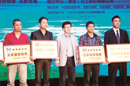中国磷复肥工业协会名誉理事长武希彦出席仪式并作了讲话。他对祥云股份近年来企业发展取得的成绩,给予了充分的肯定。同时,还寄语祥云早日上市,做大做强,奋力完成“百年梦想、千亿祥云”的宏伟目标。祥云股份党委书记、董事长、总经理胡华文,祥云股份副总经理胡华平,复肥事业公司总经理黄天刚等先后为五星级、四星级、三星级经销商授牌。