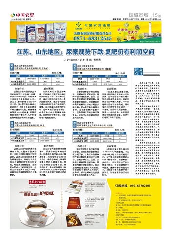 江苏、山东地区:尿素弱势下跌 复肥仍有利润空间