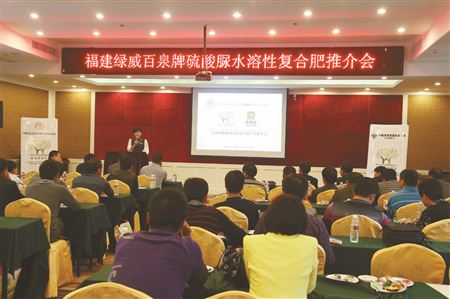 5月6日,福建省绿威农资有限公司携手河南兴发昊利达肥业有限公司联合举办的“百泉牌硫酸脲复合肥产品推介会”,在“世界柚乡中国柚都”福建漳州平和县召开,会议展示了百泉牌硫酸脲复合肥河南、山东、广东、东北、山西、安徽等地的大田作物和经济作物上的卓越表现,其“速效+长效”的特点受到了零售商的欢迎。