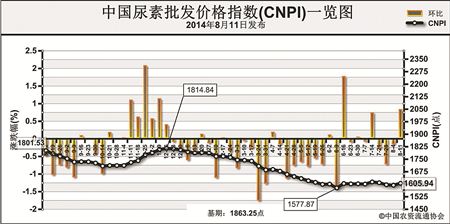 上周(8月4日-8月8日)国内尿素市场受出口拉动影响,部分地区价格上调。8月11日CNPI为1605.94点,环比上涨13.06点,涨幅为0.82%;同比下跌195.59点,跌幅为10.86%;比基期下跌257.31点,跌幅为13.81%。