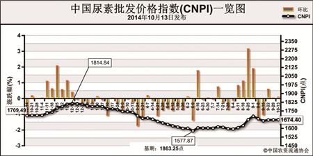 上周(10月6日-10月10日)国内尿素市场总体保持平稳运行。10月13日CNPI为1674.40点,环比上涨1.38点,涨幅为0.08%;同比下跌35.09点,跌幅为2.05%;比基期下跌188.85点,跌幅为10.14%。