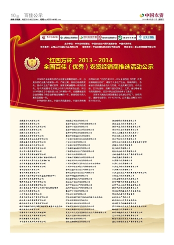 “红四方杯”2013-2014全国百佳(优秀)农资经销商推选活动公示