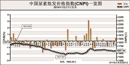 上周(11月24日-11月28日),国内尿素市场总体持稳。12月1日CNPI为1657.34点,环比上涨7.36点,涨幅为0.45%;同比下跌130.26点,跌幅为7.29%;比基期下跌205.90点,跌幅为11.05%。