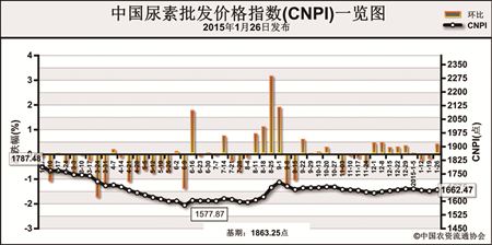 上周(1月19日-1月23日),国内尿素市场港口询单增加,批发价格和零售价格总体呈现小幅上涨。1月26日中国尿素批发价格指数(CNPI)为1662.47点,环比上涨6.63点,涨幅为0.40%;同比下跌125.01点,跌幅为6.99%;比基期下跌200.78点,跌幅为10.78%。1月26日中国尿素零售价格指数(CNRI)为1757.53点,环比上涨7.49点,涨幅为0.43%;比基期下跌147.44点,跌幅为7.74%。