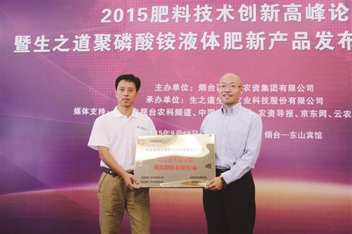 9月19日,由烟台西瑞康农资集团有限公司主办的“2015肥料技术创新高峰论坛暨生之道聚磷酸铵液体肥新产品发布会”在烟台召开。来自全国农技推广服务中心首席专家高祥照、中国植物营养与肥料学会新型肥料专业委员会主任沈兵、青岛农业大学资源与环境学院教授李俊良教授等国内肥料行业顶尖专家、学者欢聚一堂,建言献策今后国内肥料创新的发展方向。200余名经销商代表和相关机构、媒体出席,烟台西瑞康农资集团有限公司董事长万德印及总经理王刚在会上致辞。