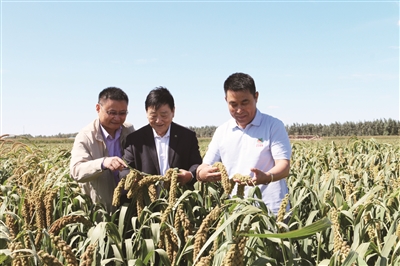 金波荡漾,是百亩谷子示范田的景象。“春种一粒粟,秋成万颗子”。尽管首次用“硫能60”,用户武成祥眉眼中全是满意。和对面地块相比较,他的谷穗一根根粗壮如马尾,沉甸甸低垂到谷秆半腰,预计亩产可达470公斤,每亩比去年增产200多公斤。