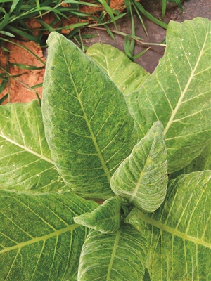 农医生答:这是烟草花叶病,肥水不合理,温差大,种子带毒是诱发该病的主要原因。同时由于该病传染性强,如果少量发生最好拔出深埋,补苗时最好换个地方,药剂选择可从三个方面入手:1.病毒抑制剂+调节剂;2.补充锌肥,加强水肥管理;3.蚜虫等害虫,可用宁南霉素/氨基寡糖素/香菇多糖/吗呱乙酸铜/毒氟磷+芸苔素/海藻精+吡虫啉/啶虫脒/烯啶虫胺吡蚜酮+硫酸锌,最后打顶、抹茬,尽量先管理健株,最后一起管理病株;最好轮作,不要重茬,推荐8%宁南霉素50ml一桶水,效果不错。