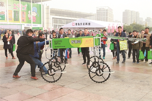 据鲁虹农科技术人员介绍,“智慧蛙”遥控自走式喷杆喷雾机采用高性能电池作为整机的能源,清洁环保,续航强劲,运行成本低,重复利用率高。喷雾机四轮均采用独立电机设计,其所采用的大扭力防水电机动力强劲,保障了机器在各种复杂地况中的通过性。在展会现场,部分质疑“智慧蛙”动力的参观者聚在一起,与“智慧蛙”进行了一场别开生面的人机角力大赛,多名参观者拼尽全力,仍无法抵挡“智慧蛙”的强劲的推动力。