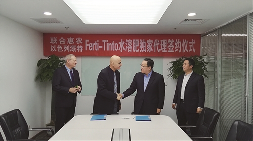 联合惠农是在原新惠农公司基础上,由中海油化学、中农集团控股、广东天禾农资于2016年8月发起成立,业务范围包括化肥及其原材料、化工品、农药等产品国内贸易、分销及进出口。近几年联合惠农在新型肥料引进、推广领域大力开拓,形成了引进国际高品质、把握农业新趋势、服务农业新需求的发展思路,专业水平和扎实作风赢得了国际合作伙伴一致认可。本次联合惠农获得以色列溉特公司Ferti-Tinto水溶肥中国市场独家代理权,是继今年8月获得荷兰罗西尔复合肥中国市场独家代理权之后的第二项国际高端产品合作。联合惠农公司总经理李秋兵表示:联合惠农与溉特公司在服务终端农民的理念上高度契合;更重要的是,我们会用心把这个产品做火、做红!
