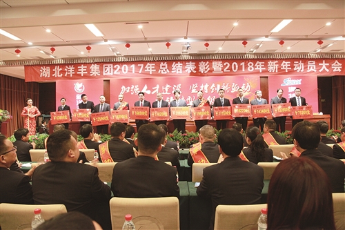 本报讯 2017年12月28日,湖北新洋丰肥业股份有限公司隆重召开2017年度总结表彰暨2018年新年动员大会,对2017年中各条战线表现优异、成绩卓越的一大批先进集体和个人给予了重奖,奖励总金额高达近1200万元。