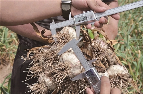 为了让大家更直观、更客观地看到美盛®稼镁佳TM肥料的效果,美盛公司高级技术支持专员王明建分别在示范田和对照田各取了两个一平米见方的区域进行测产。结果表明,从外观上看,使用美盛®稼镁佳TM肥料的大蒜收获期的叶片依然浓绿无早衰,蒜头大且均匀(直径6~8cm)、茎秆粗壮、根系发达;而对照田蒜头直径小,叶片较窄且已经枯黄,根系也比较短。从测产数据上看,通过取样、去泥、剪秆、称重等一系列环节,最后在现场所有人的见证下,测量得出:用美盛®稼镁佳TM产品的地块,每平米平均产量是7.685斤,对照田的平均产量是5.295斤,增产45.12%。这个数字让所有人都为之惊讶,却又因亲眼所见十分信服。