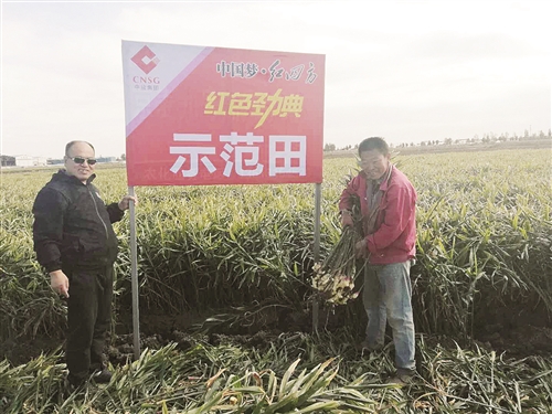 在河北省唐山丰润区新军屯的红色劲典示范田里,使用了红四方产品15-5-25高塔硝基和20-20-20水溶肥的大姜长势喜人,农户王文武喜笑颜开,预计亩产量1万斤。根据现价3元斤来估算,亩收入1.2万元。